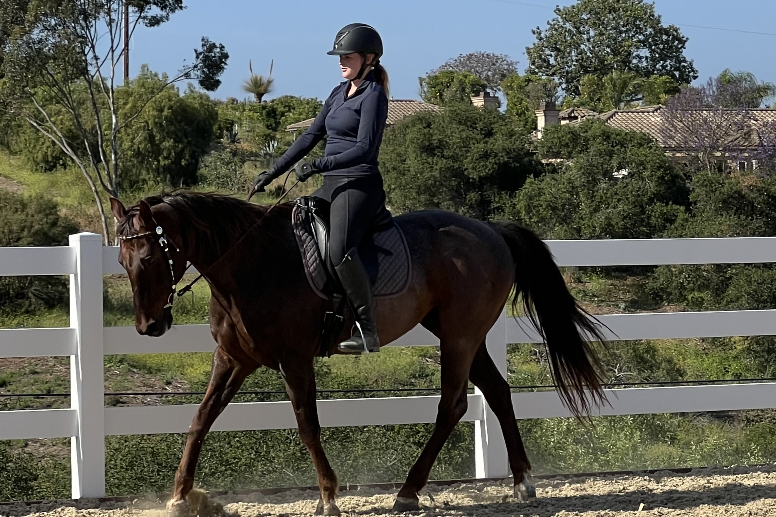 After moving to the United States at 15 years old, she continued taking lessons, paying for her training as a working student at a large barn, and riding on and off throughout her adult life. Eventually, she left a high-stress, top-earning career to slow down and invest in her true passion – riding horses and teaching lessons.